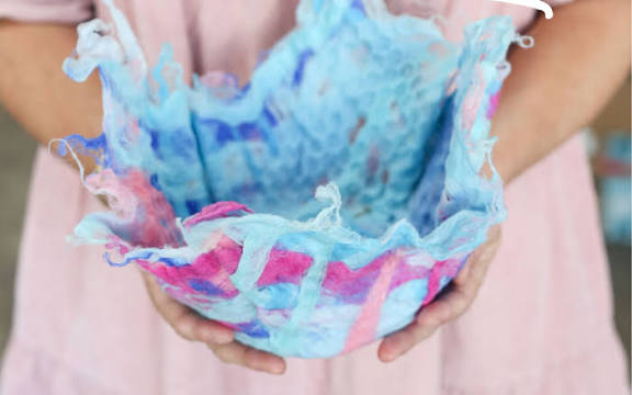 Using wool you will create a unique and special sculpted bowl in the colors of you choice. You will be led through turning wool into felt and then sculp it into a bowl in your choice of shape.